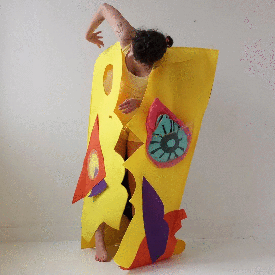 Mouvements légers, performances déambulatoires dansées à partir d'une série de sculptures portables imaginées par la plasticienne Marie-Noëlle Deverre,