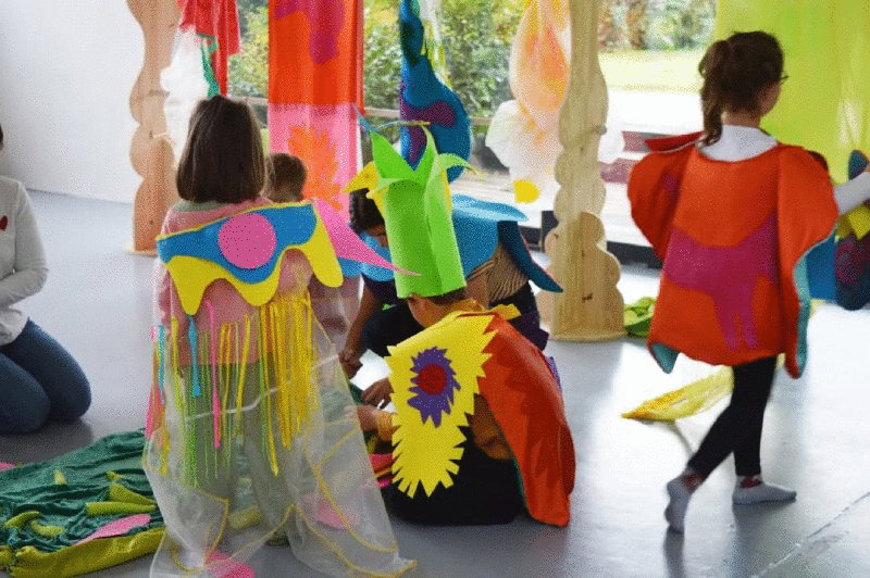 qui invitent les enfants et les familles à faire vivre et à mettre en mouvement les pièces textiles.